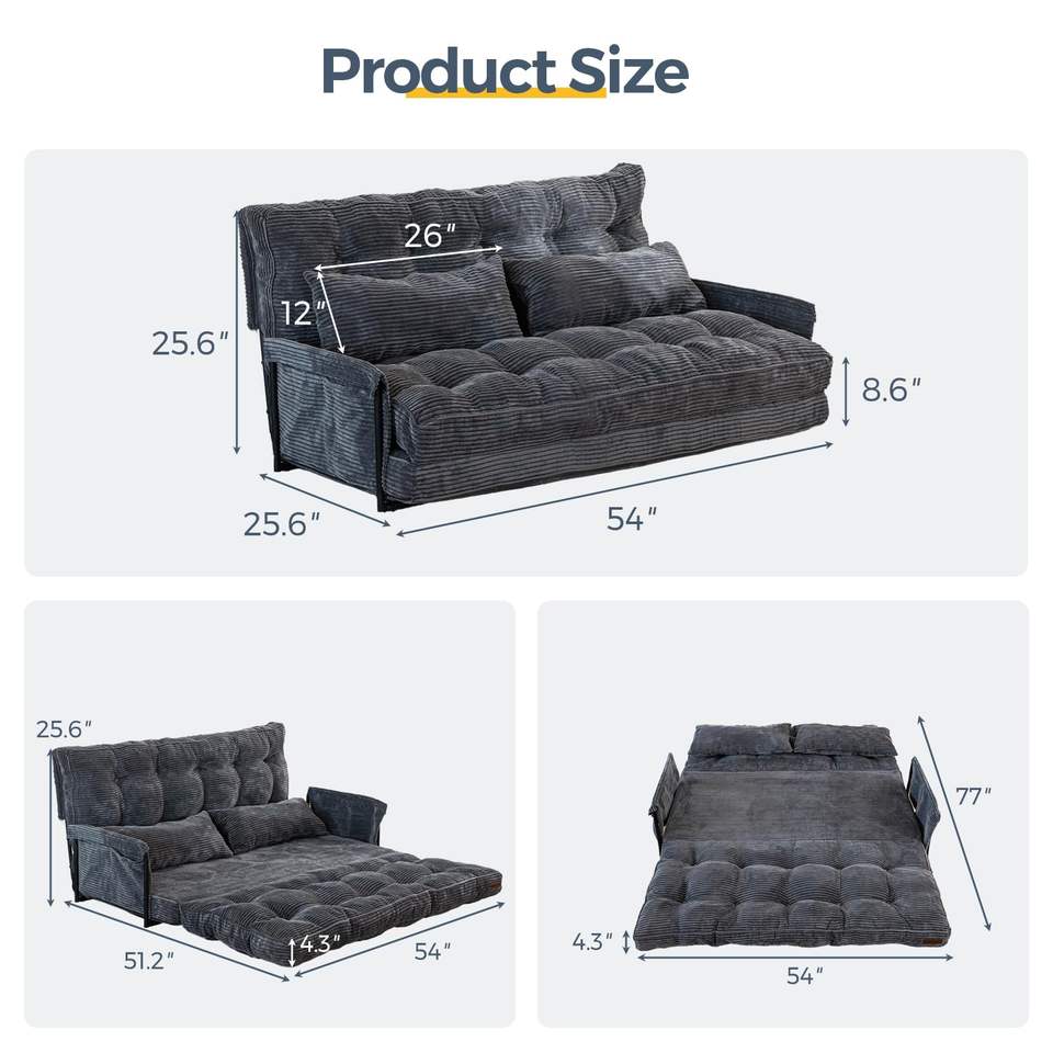 Puffy Comfy Small Convertible Sleeper Futon Causeuse en mousse souple Canapé double Canapé-lit 2 places Lit de jour pliant avec fonction lit