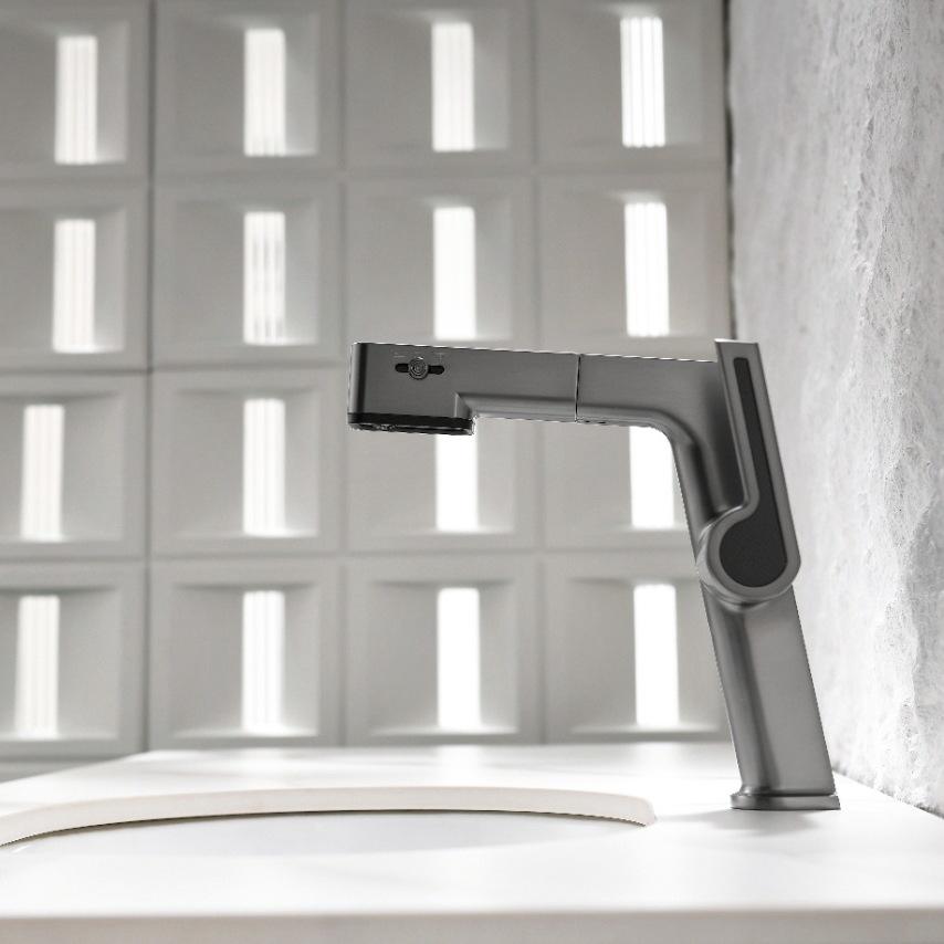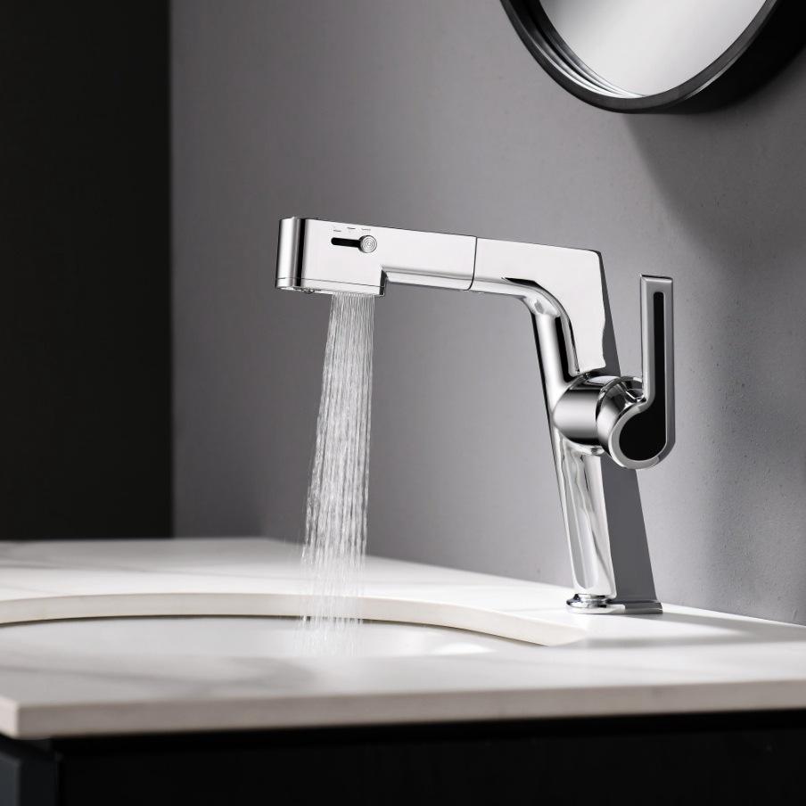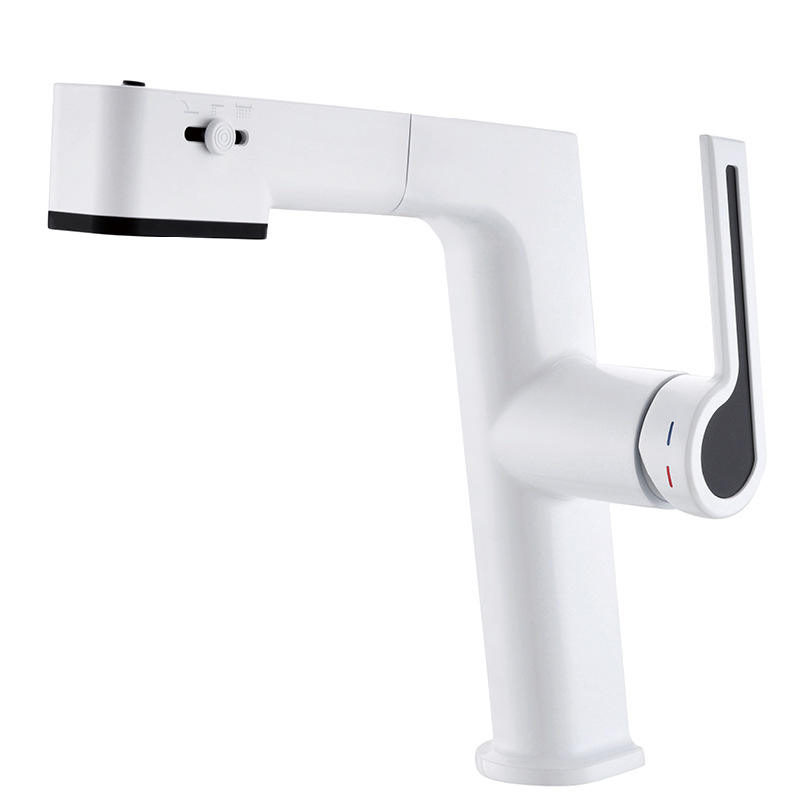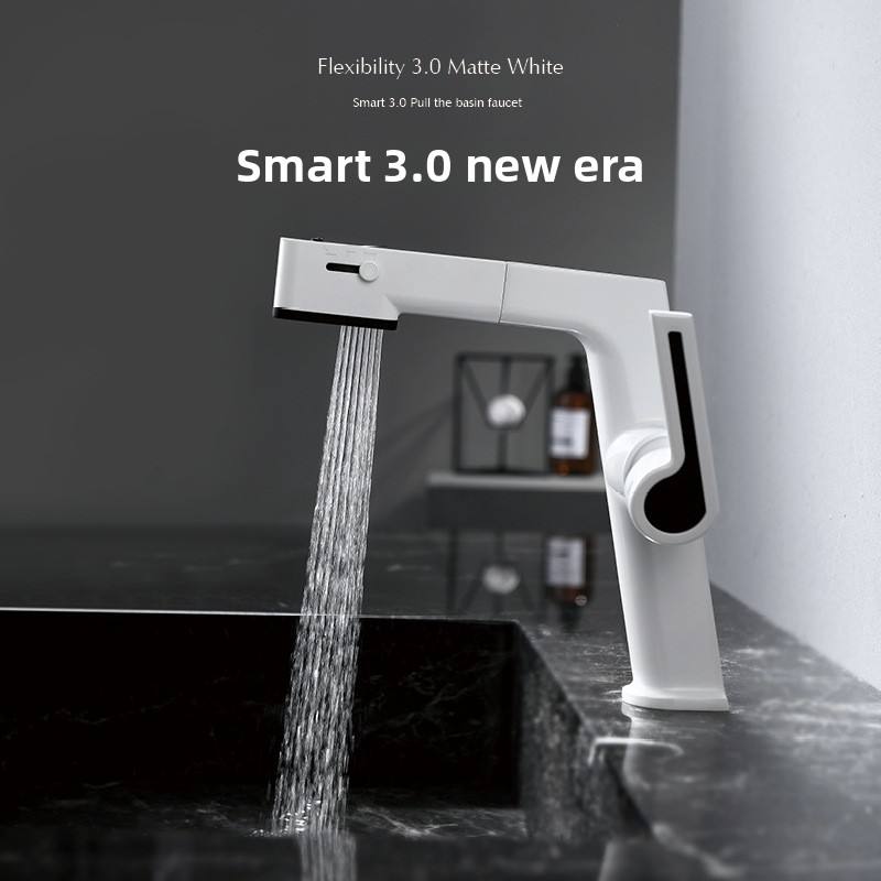 Robinet de lavabo extractible, modèle intelligent amélioré, robinet d'eau chaude et froide avec flux d'eau vers le haut et commutation libre