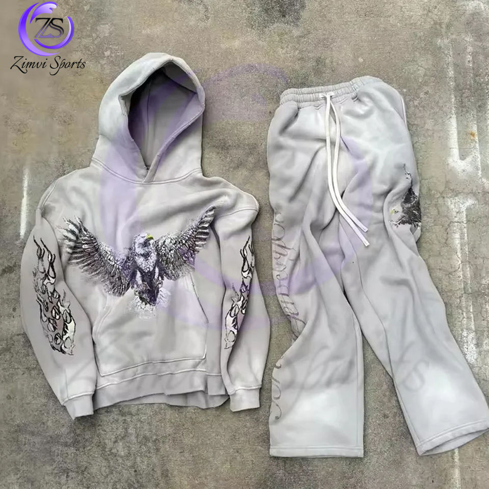 Pull 2025 plus récent Style OEM ODM Service personnalisé fait 2 pièces sweats à capuche et pantalons de survêtement lavage à l'acide survêtements