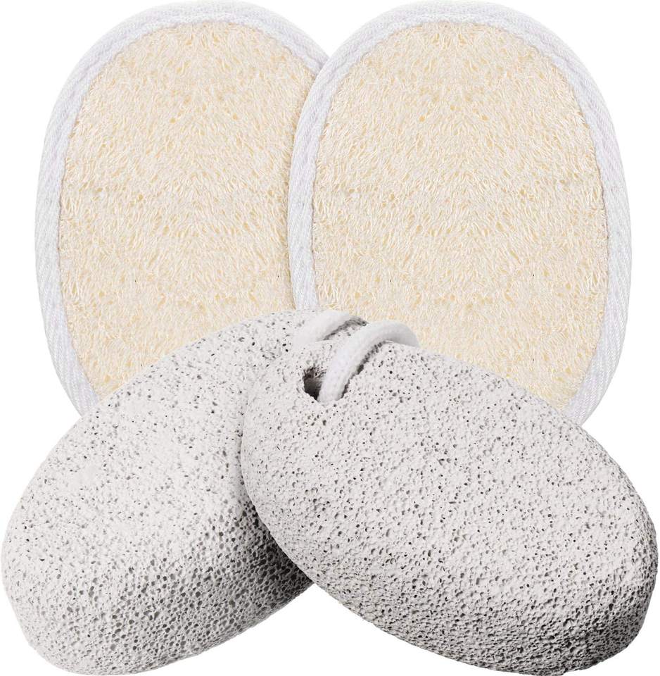 Pumice Stone and Exfoliating Loofah Sponge Pad, Double-sided Callus Remover Foot Scrubber and Loofa Sponge Scrubber Body Natural