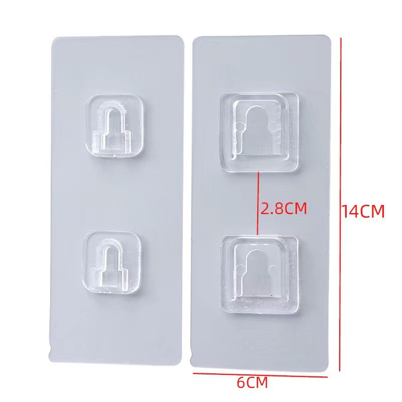 Sans poinçon solide sans couture Double rangée boucle en plastique mural support Transparent attache collant crochet de suspension