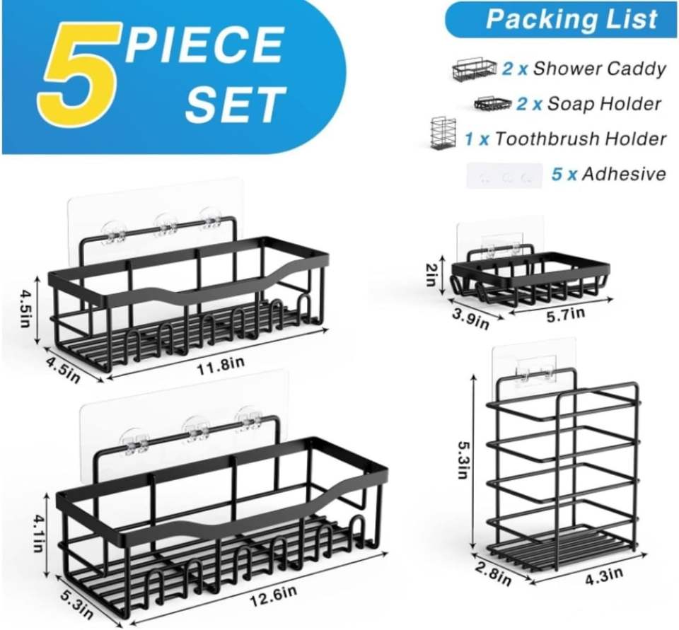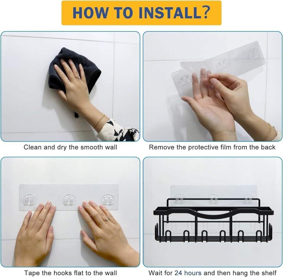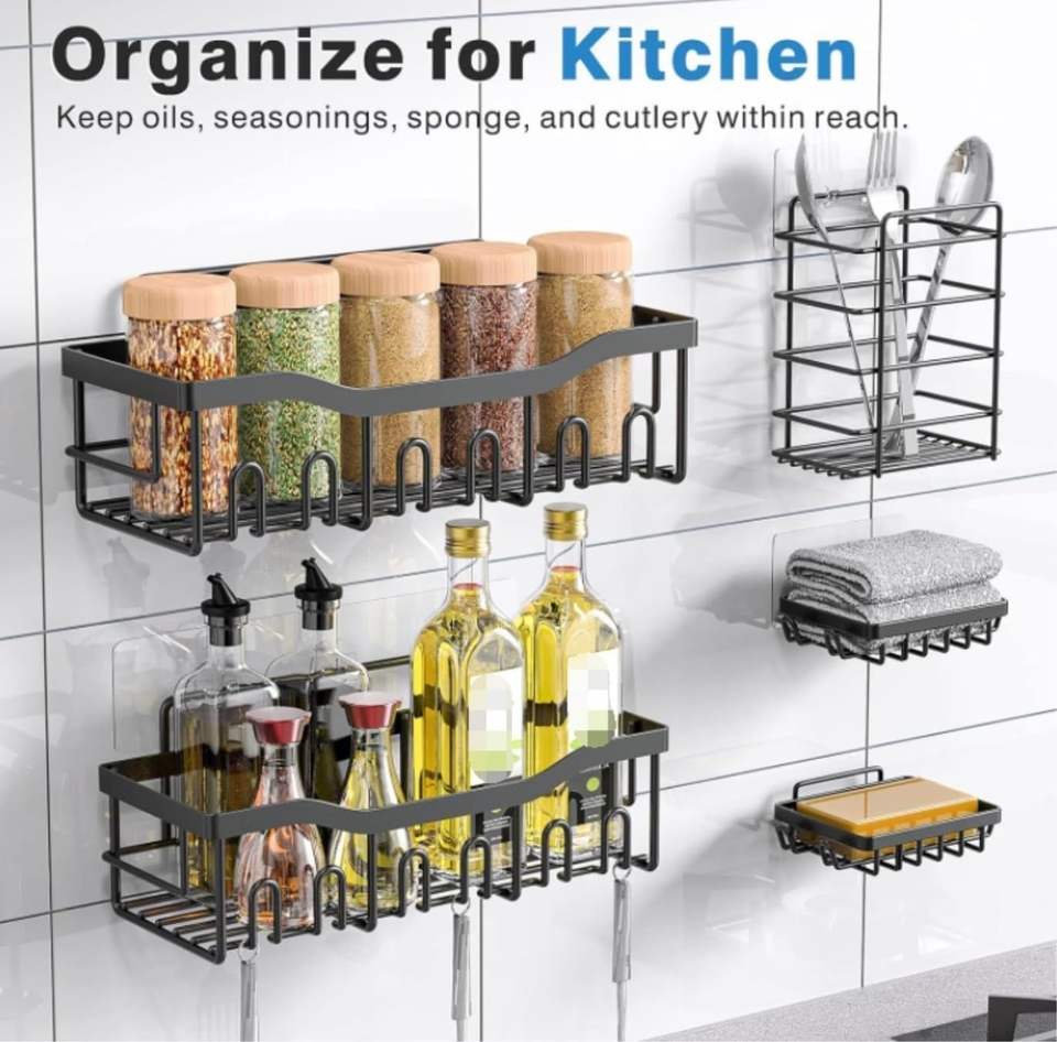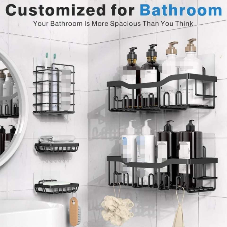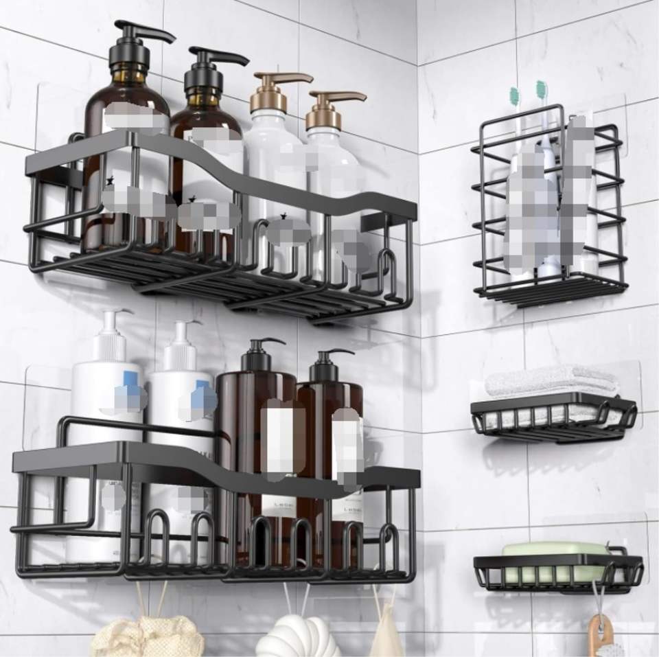 Ensemble d'étagères de rangement murales en fer sans perçage pour salle de bain, pour le lavage et le rangement