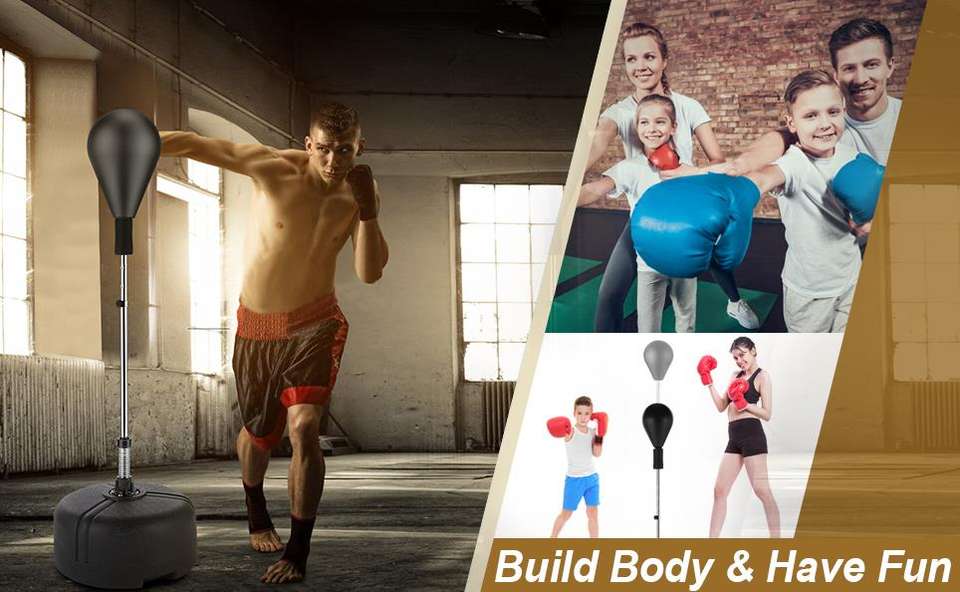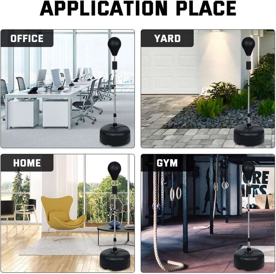 Sac de frappe avec support, sac de boxe réflexe, balle de frappe de vitesse pour adultes et adolescents avec 2 poignées d'entraînement et de Fitness pour la maison