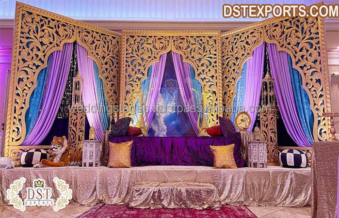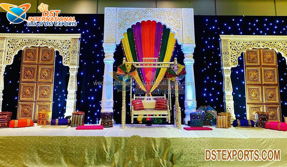 Décoration de scène de mariage punjabi, DJ de nuit, décoration de scène de mariage à Toronto, décoration de scène de mariage colorée, décoration de scène de Mehndi