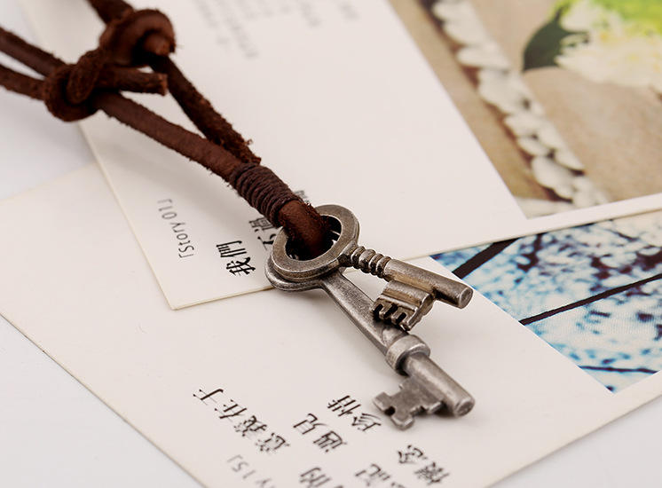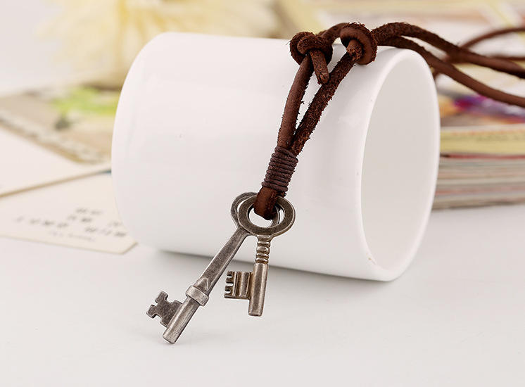 Punk Biker Brown Surfer Mignon Clé Pendentif En Cuir Véritable Dentelle Collier Ras Du Cou