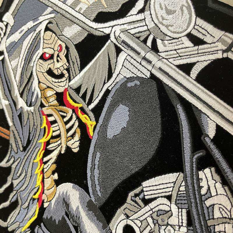 Patchs brodés Punk Biker Skull Big Rider à coudre ou thermocollants pour vêtements, applique de haute qualité, grand patch dorsal