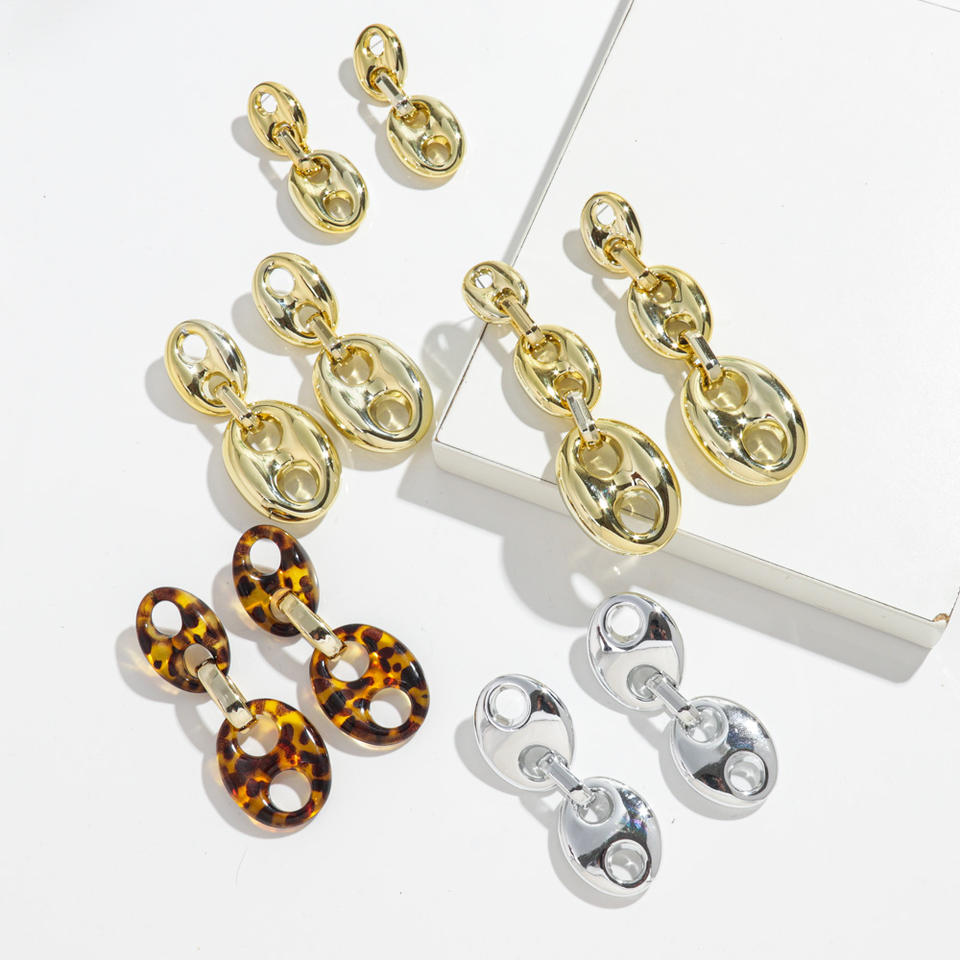 Bijoux de style punk hip-hop, boucles d'oreilles cool en forme de graines de café, imprimé léopard, chaîne plaquée or CCB, boucles d'oreilles pendantes en forme de nez de cochon, vente en gros