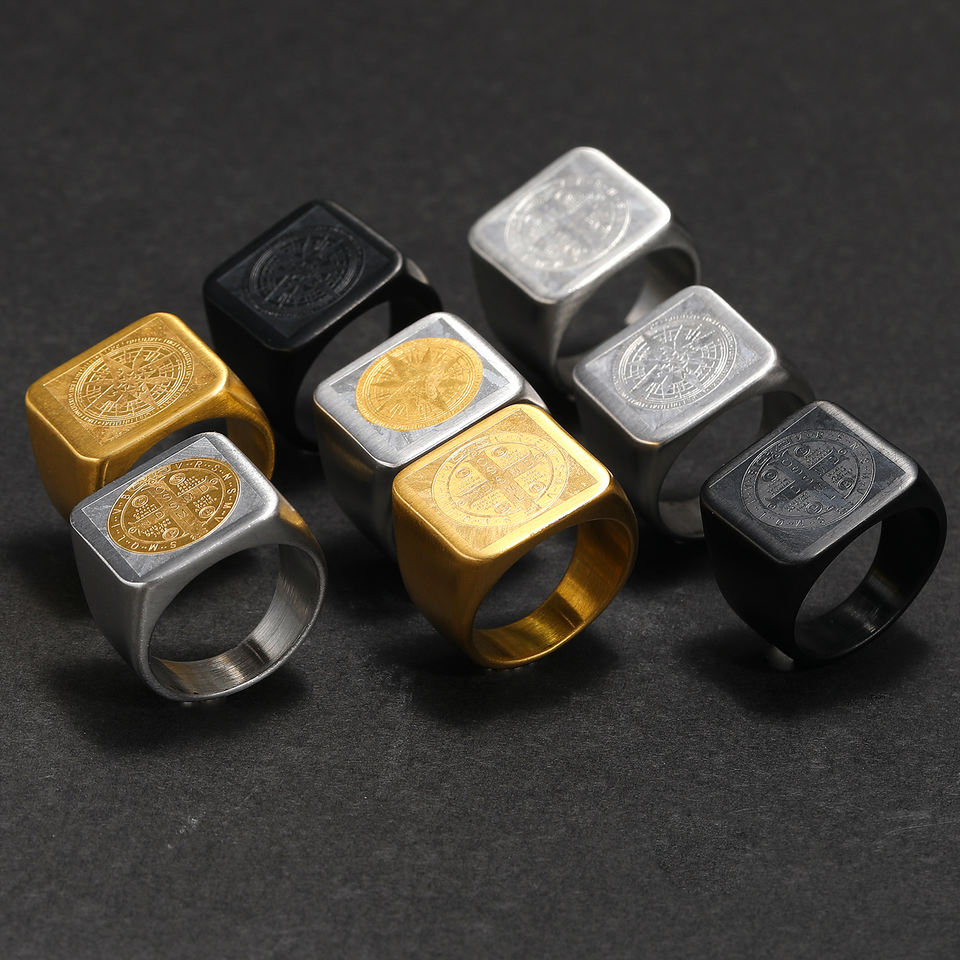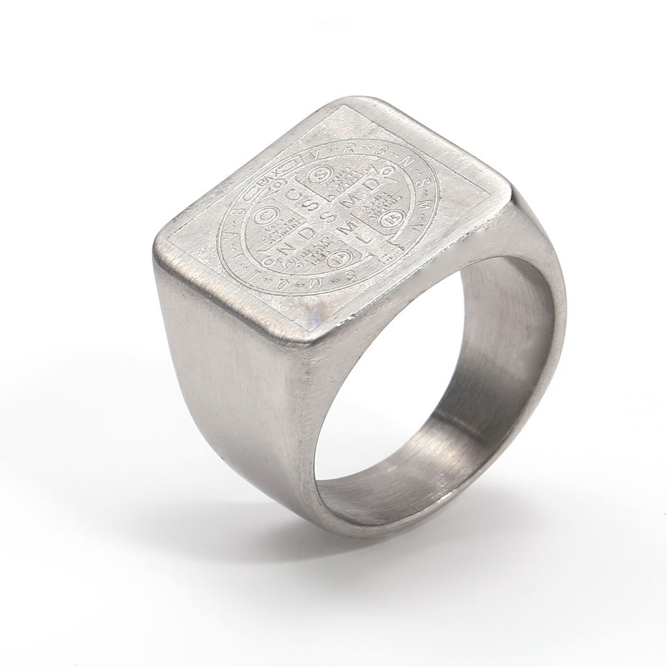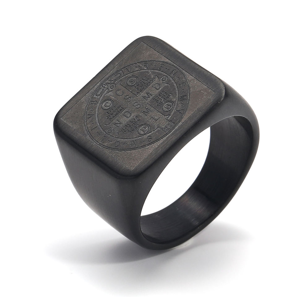 Punk personnalité boussole timbre Vintage CSPB lettre croix exorcisme anneaux en acier inoxydable anneau hommes fête cadeaux