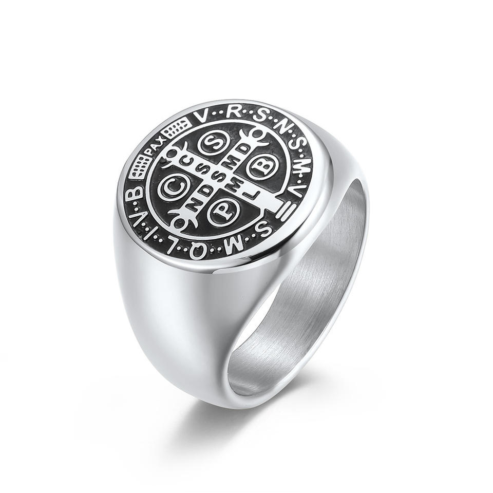 Bague en acier inoxydable pour homme, style punk rétro, croix exorciste