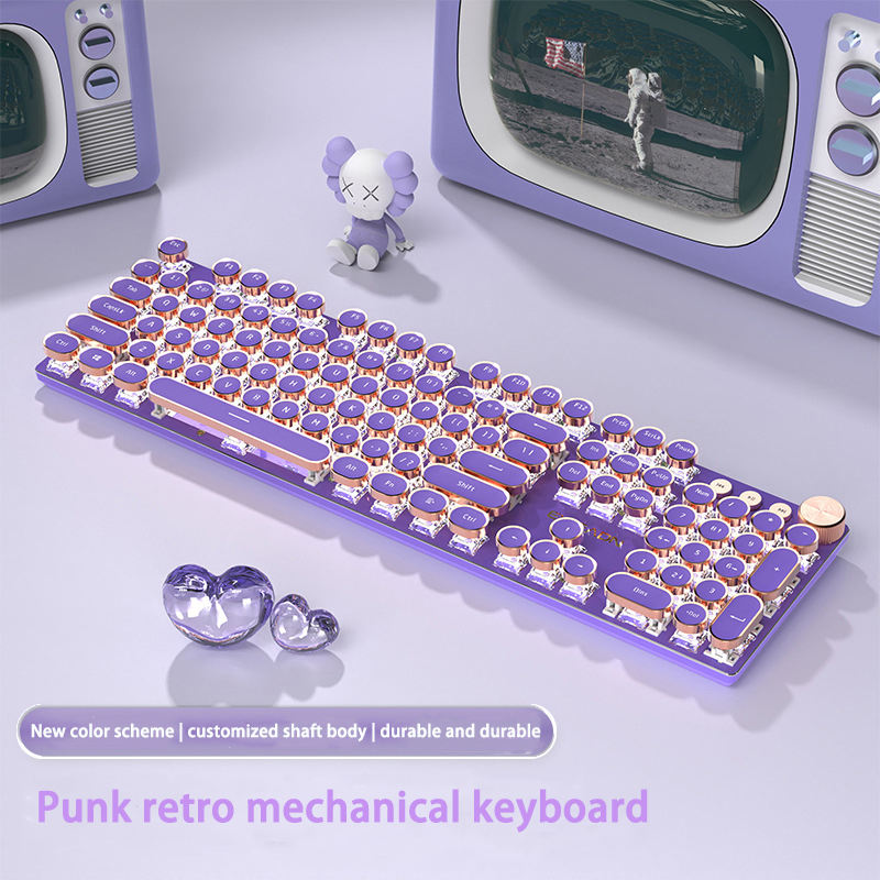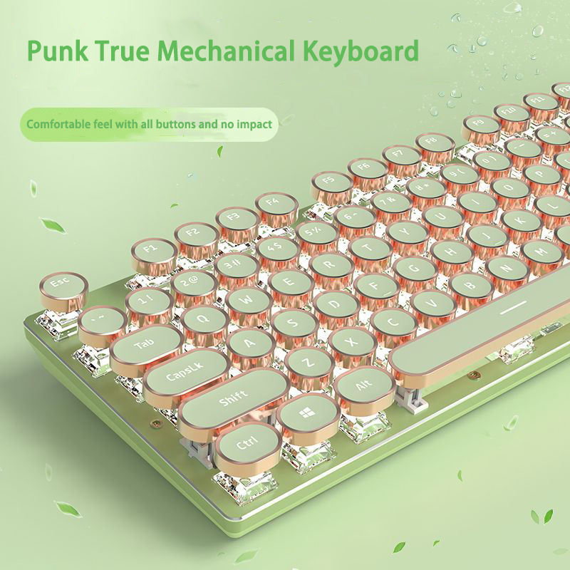 Clavier mécanique de jeu et de bureau avec touches rondes punk, poudre de miel, axe LED rétroéclairé blanc, filaire USB