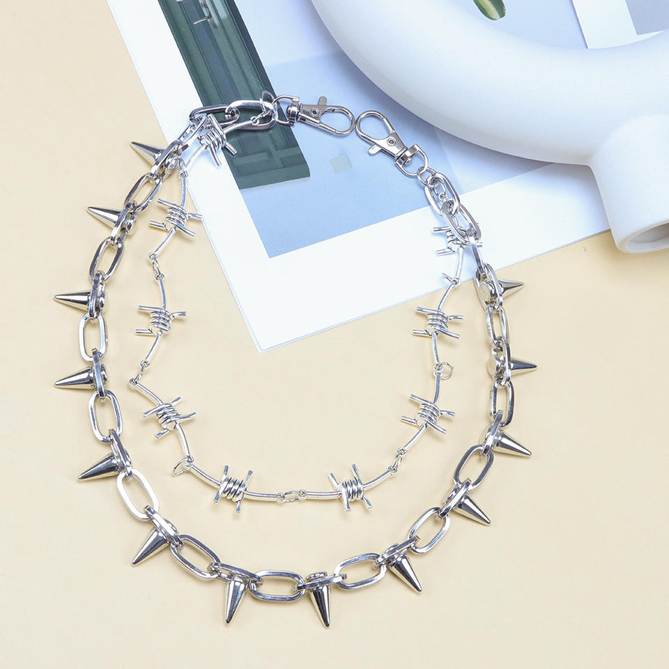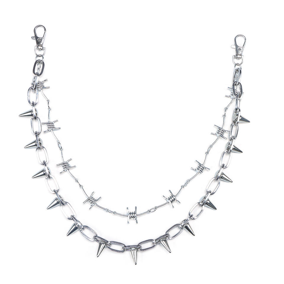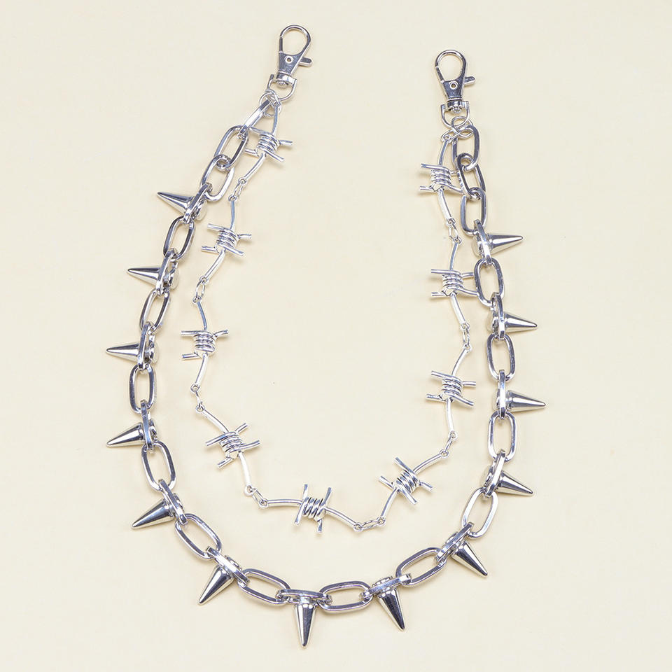 Chaîne de taille en métal à double couche style punk avec rivets à pointes pour hommes et femmes, accessoire de mode urbaine