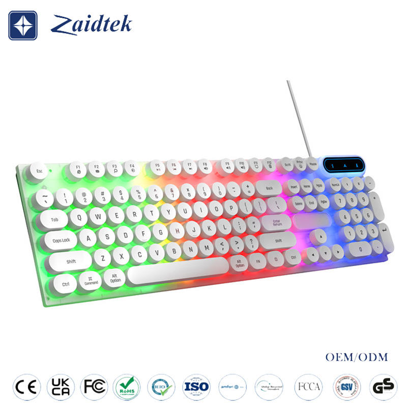 Ensemble clavier et souris de jeu lumineux étanche filaire USB punk, clavier de jeu rond avec touches lumineuses, combo clavier et souris de jeu