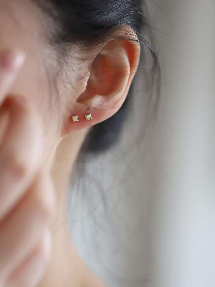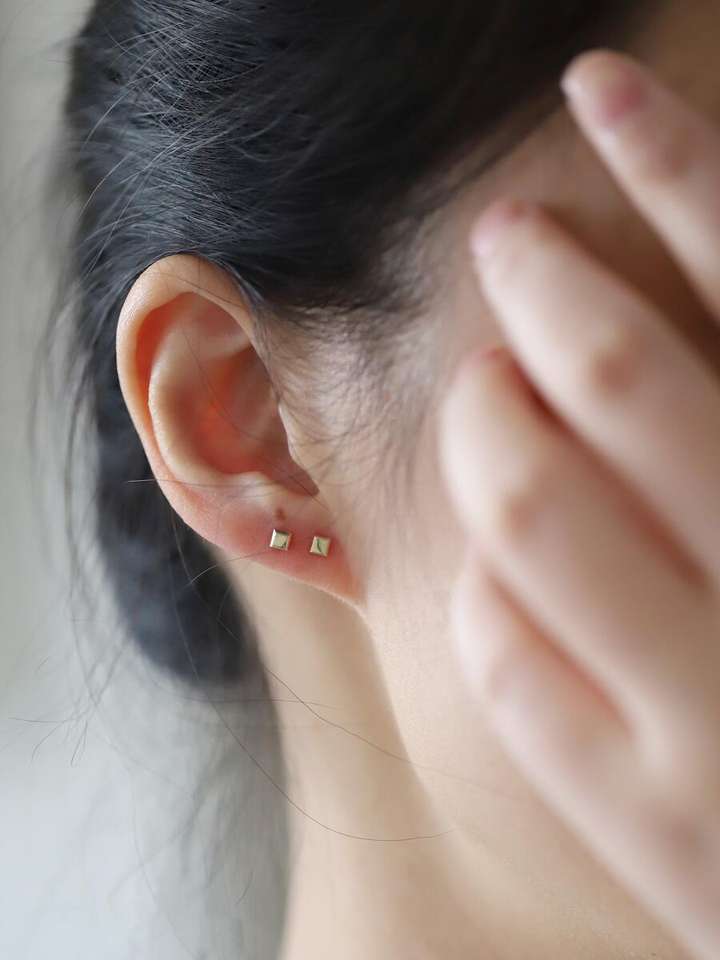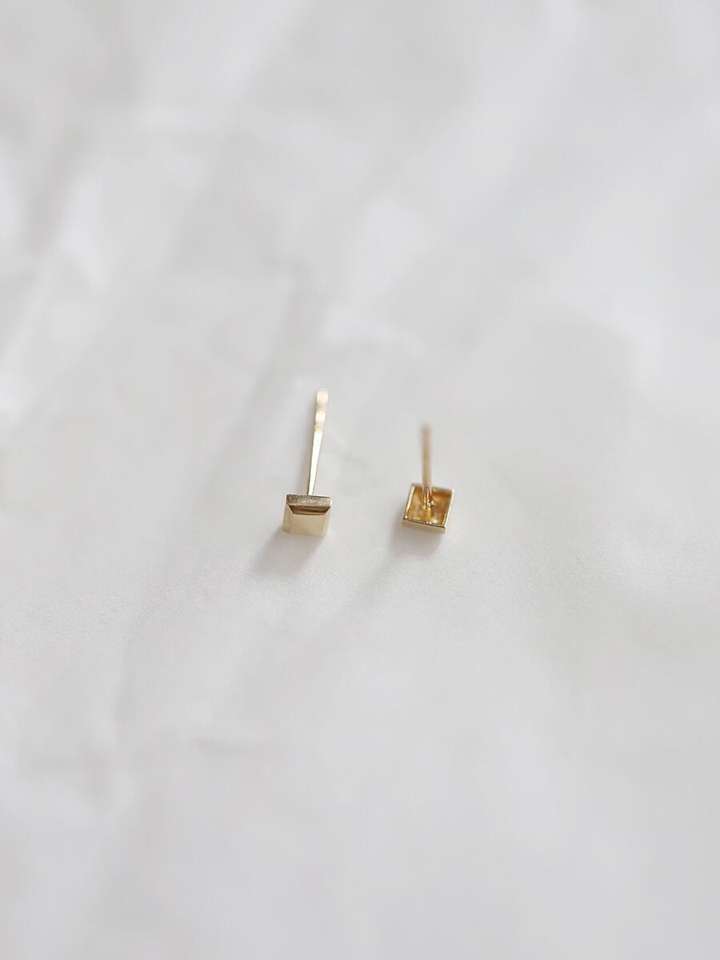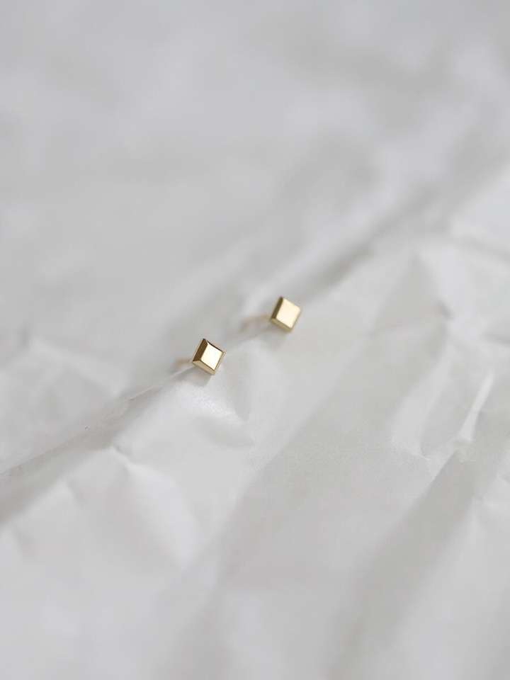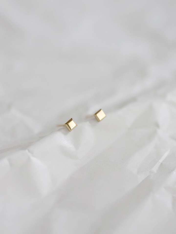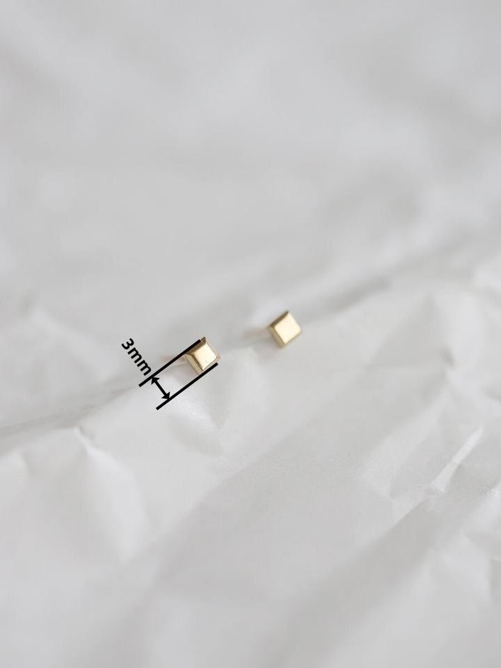 Petits carrés lisses en or pur 14 carats, conception minoritaire, mini boucles d'oreilles japonaises et coréennes, kj470