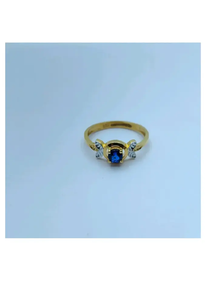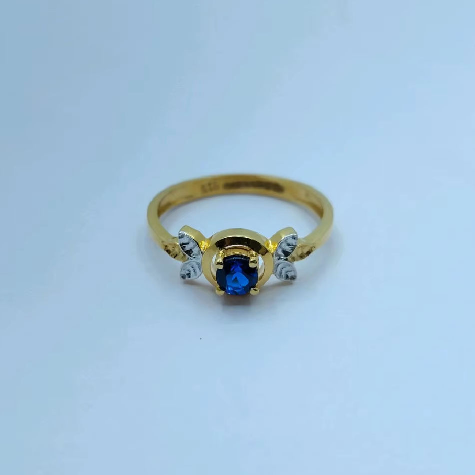 Bague en or pur 22 carats avec pierre précieuse bleue | Bijoux en or jaune marqués | Bague fine pour femme | Fait main | OEM ODM Vente en gros
