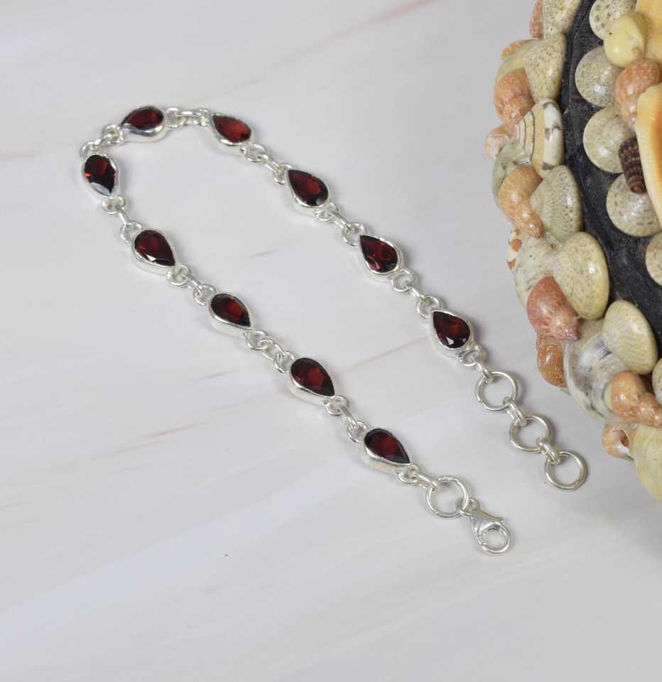 Argent Sterling pur 925 avec naturel 10 grenat rouge à facettes en forme de poire pierres précieuses réglage de lunette chaîne réglable Bracelets bijoux