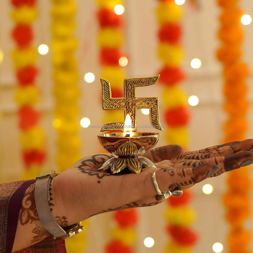 Pure Brass Art Deco Hanging Swastik Diya for Puja Diwali Wedding with Custom Color and Personalized Logo