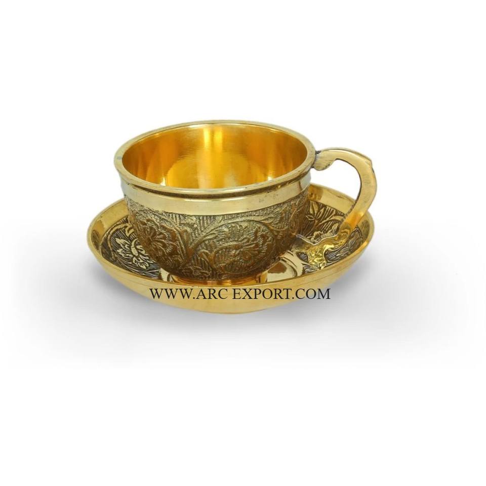 Tasses à thé et soucoupes en laiton pur sculptées à la main, plaquées or, décoratives de table, design classique et dernier cri, nouvelle arrivée, grandes tasses