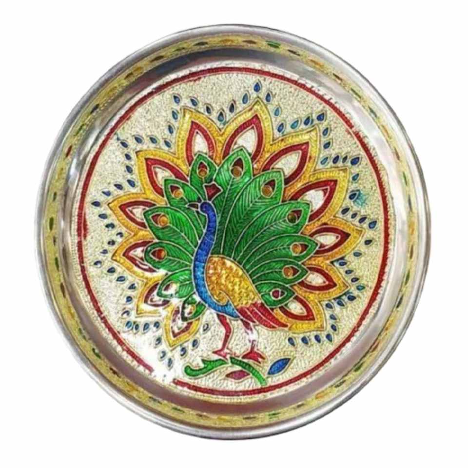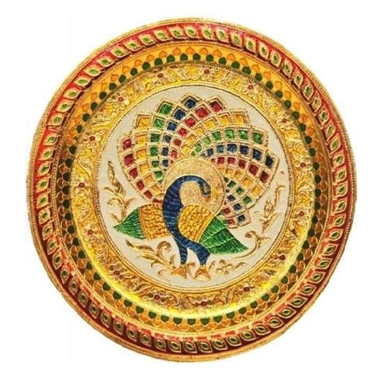 Assiettes rondes de service en laiton pur, de haute qualité, pour restaurants et hôtels, avec motif de paon gravé