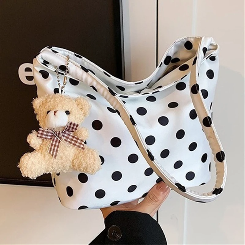 Couleur pure à pois rétro Chic seau sac à la mode Style coréen fourre-tout sac à main 1 Pc femme mode sous les bras sac à bandoulière