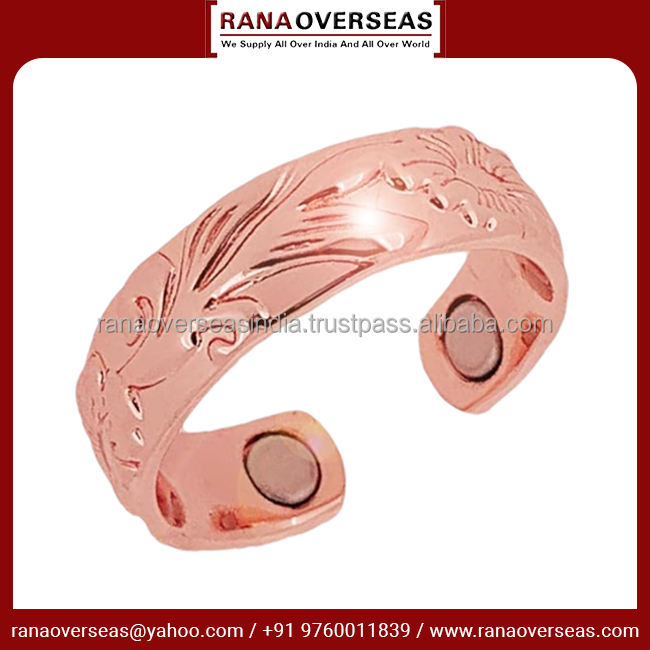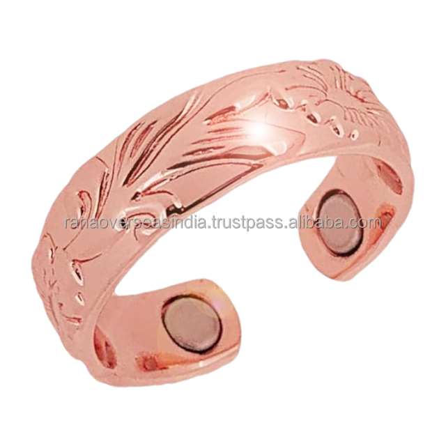 Anneau de manchette ouvert réglable en cuivre pur conception gravée hommes et femmes anneau pour l'arthrite et les articulations à bon taux