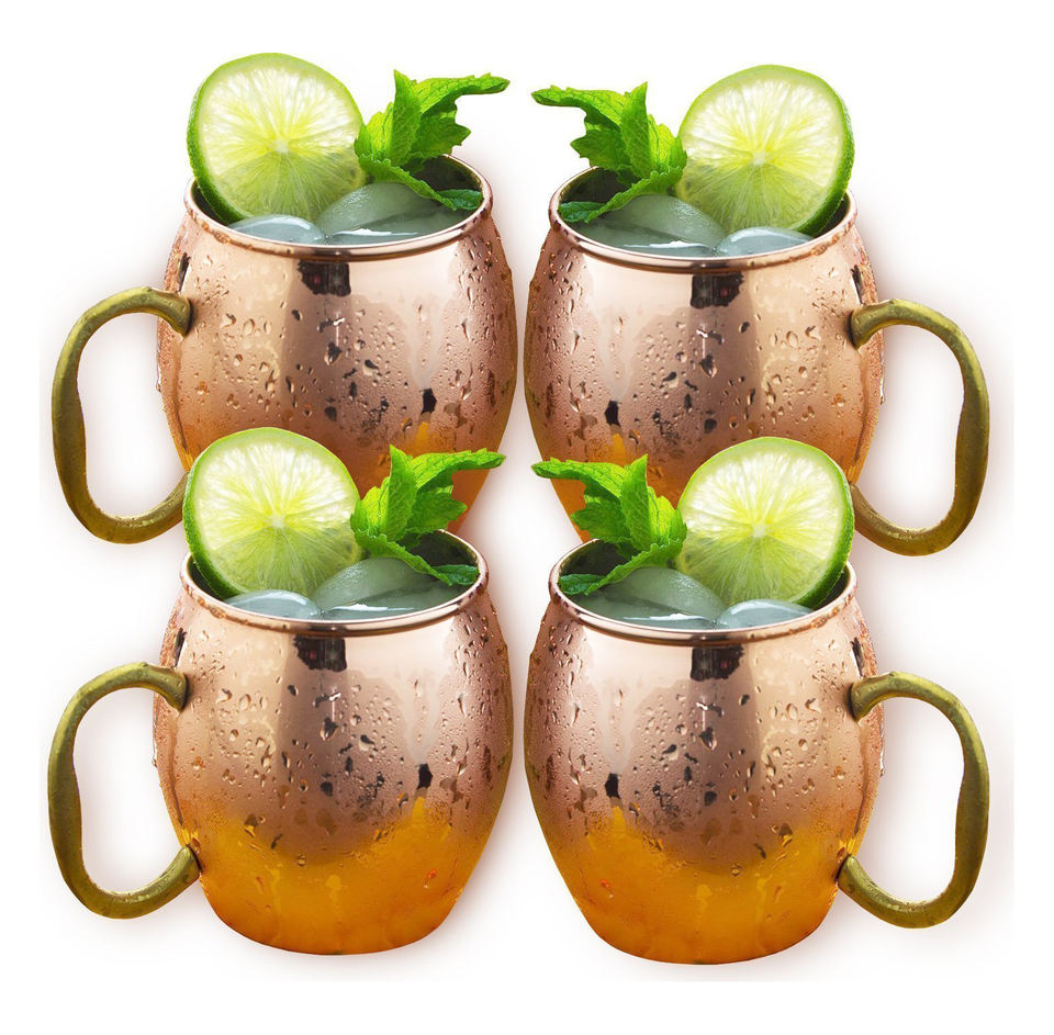 Lot de 4 tasses à mules de Moscou sculptées à la main et martelées Elegance 100% cuivre pur pour l'eau, la bière et le cocktail pour l'école.