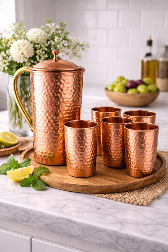 Ensemble de carafes en cuivre pur avec poignée et couvercle, design vintage, luxe, décoration de table, isolation thermique, écologique, élégant, décoration de salle à manger