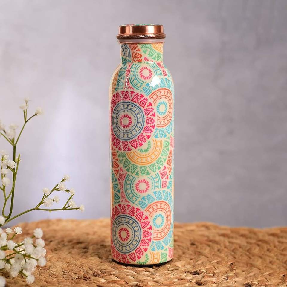 Pure Copper Printed Design Leak-Proof Water Bottle Health Benefits Plastic Drinkware and Storage at Great Prices!