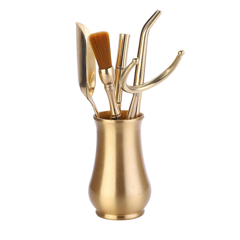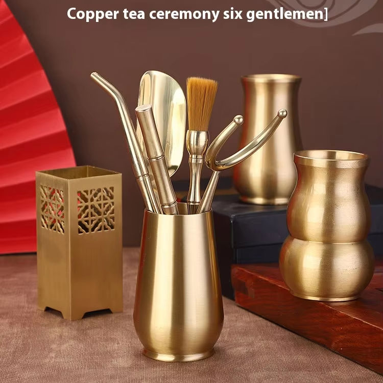 Ensemble de cérémonie du thé en cuivre pur de six outils de thé pour messieurs