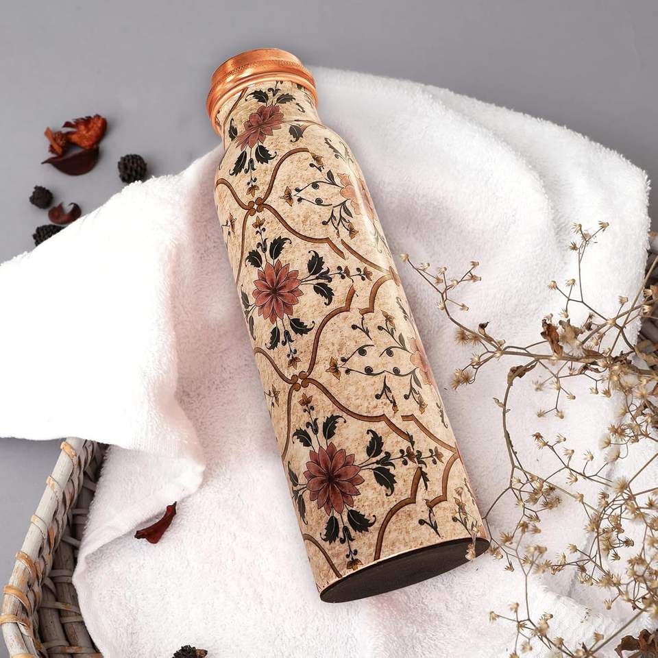 Bouteille d'eau écologique en cuivre pur 1 litre 34 oz, fabriquée à la main, anti-fuite, ayurvédique, pour la santé, le sport, le fitness, le yoga, la gym