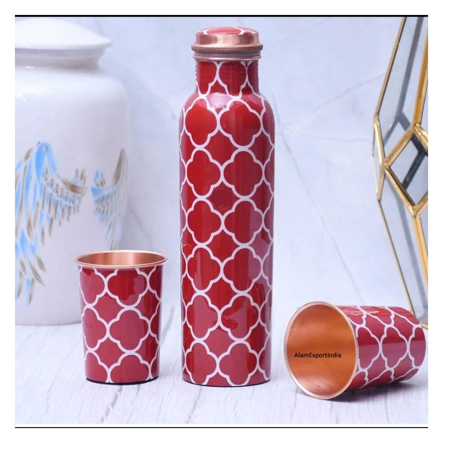 Bouteille d'eau en cuivre pur Avantages soucieux de la santé Bouteille en cuivre Conception imprimée pour la décoration de la maison Accessoires de cuisine Produit