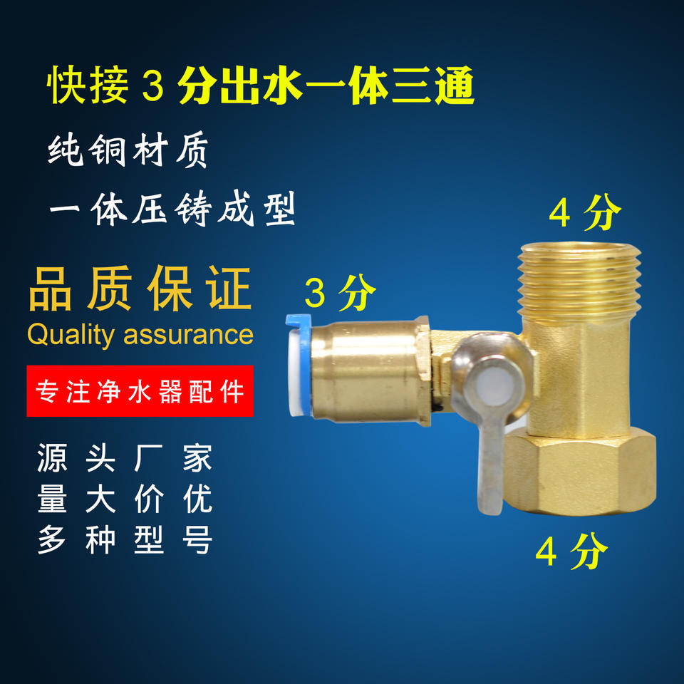3-point pure copper ball valve with quick-connect fittingPart Number