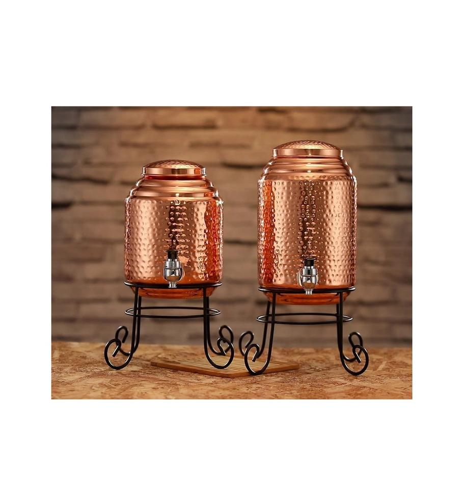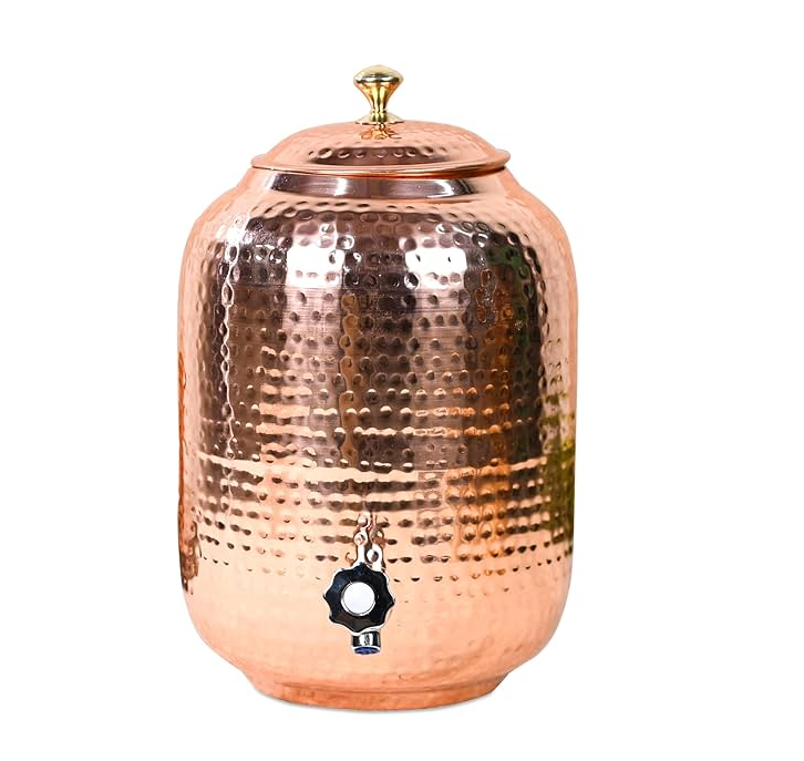 Distributeur de pot d'eau en cuivre pur Ayurveda Heath Benefits 5 litres Pot de stockage d'eau étanche à la main