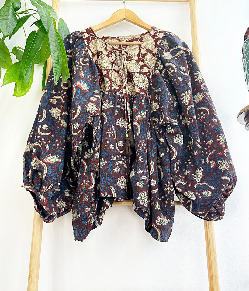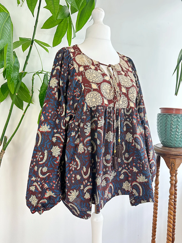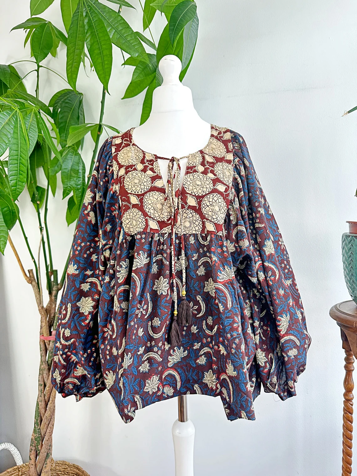 Pur coton bohème chemisier haut terreux Floral confortable vêtements de jour courte longueur indien Bagru bloc imprimer haute qualité décontracté en mousseline de soie