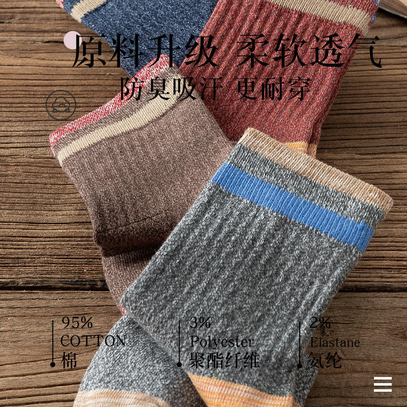 Pure Cotton Crew Socks Color Blocking Sweat Absorbent Women's Casual Socks Autumn Spring Retro Style