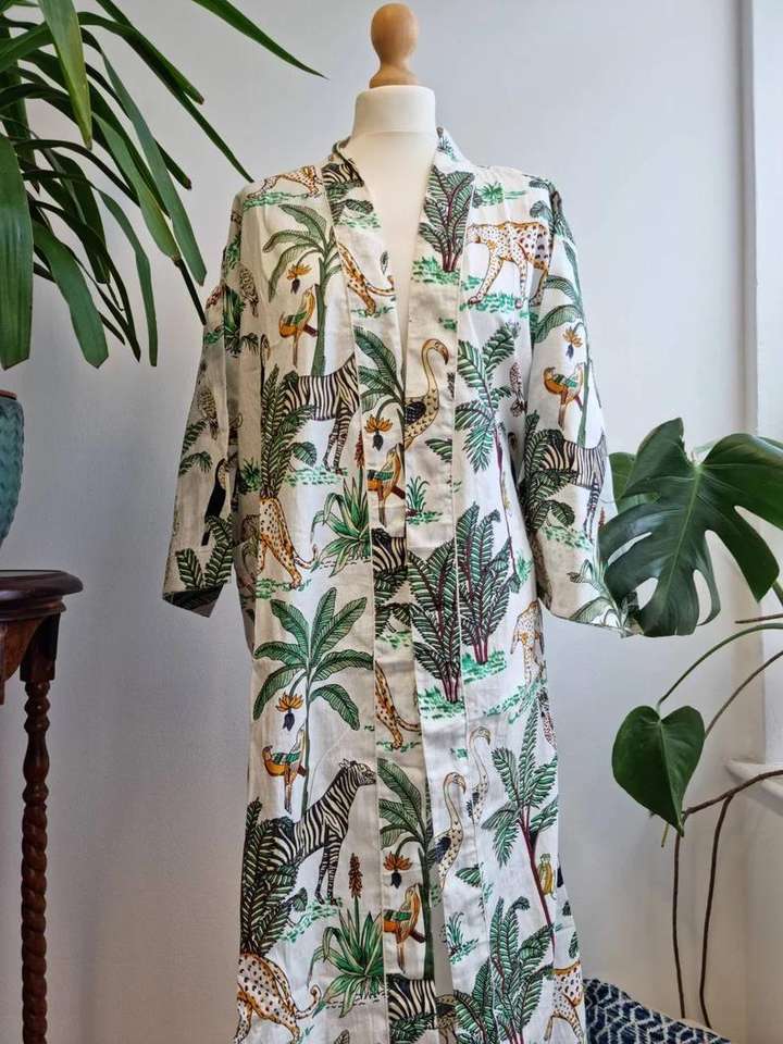 Pur coton indien bloc imprimé été Kimono Floral plage dissimulation confortable Robe de maternité Rose pêche longueur au sol naturel