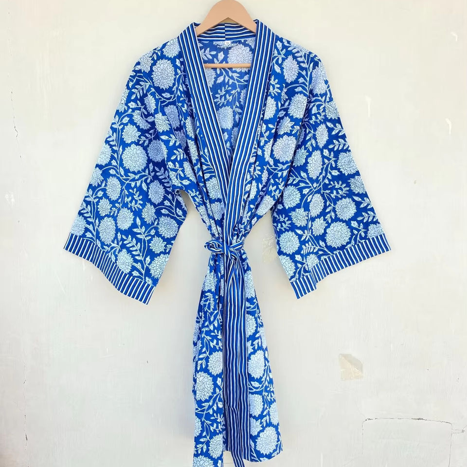 Fabric:Block Print Robe Cotton Kimono