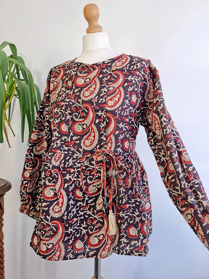 Pur coton lin haut terreux broderie florale Vintage Boho réservoir confortable jour d'été Blouse-élégant indien Bagru main-bloc