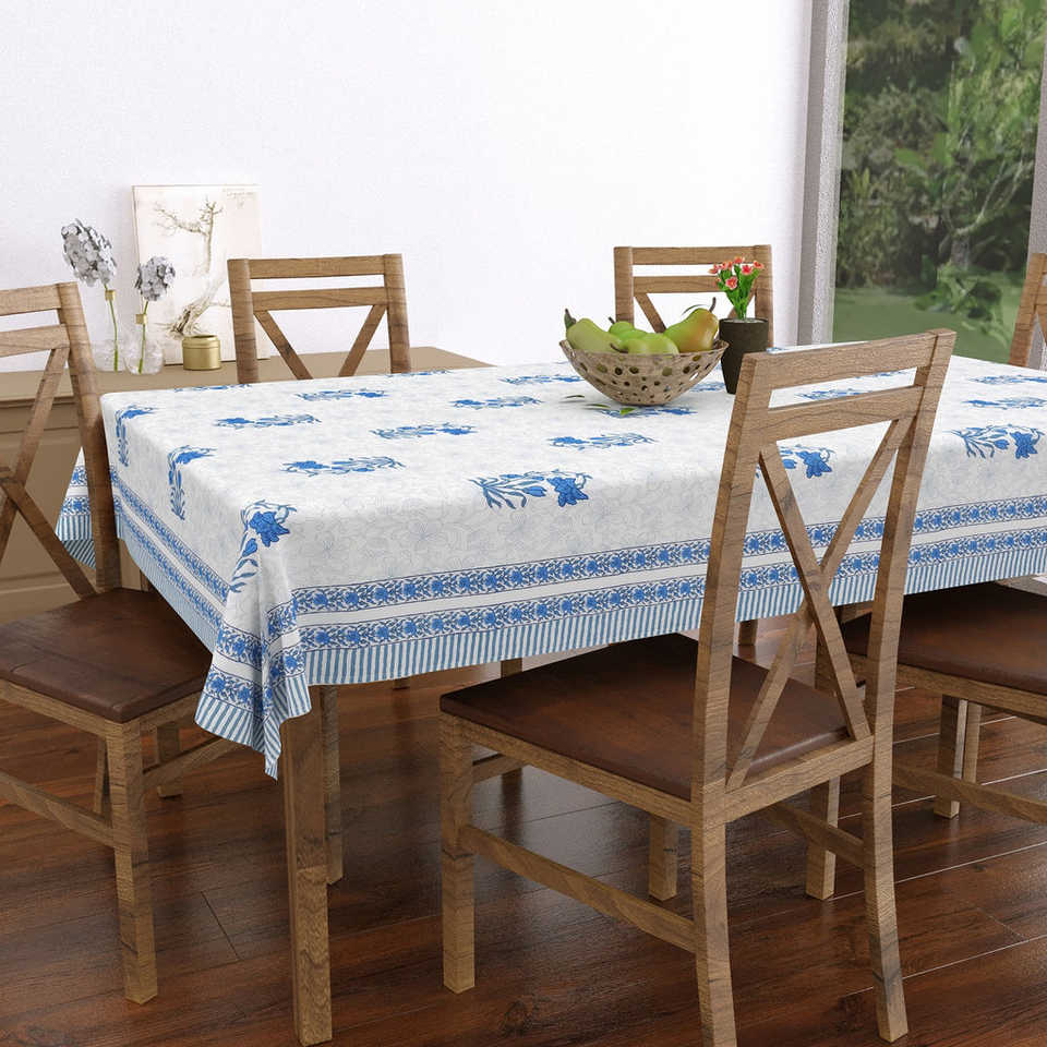 Nappe de table six places en pur coton Rajasthani imprimé bloc de main en bleu Buta