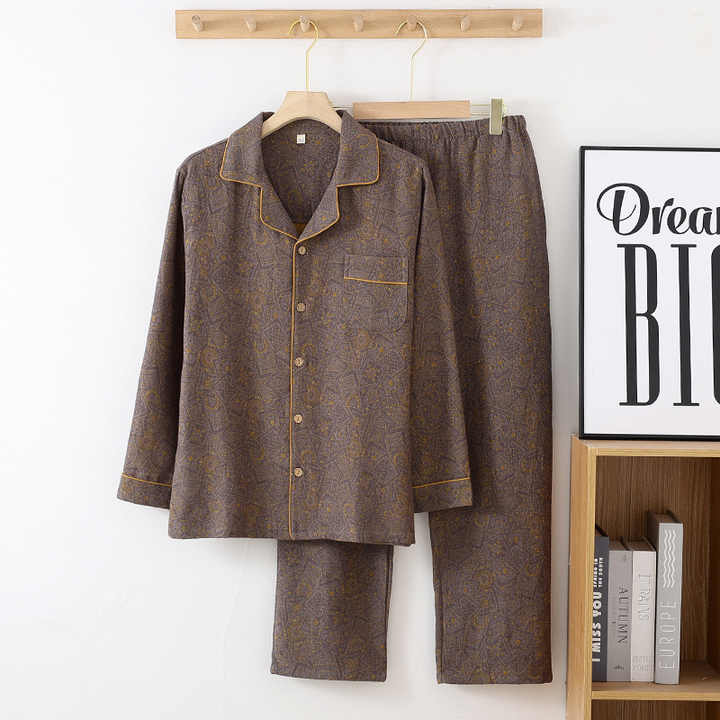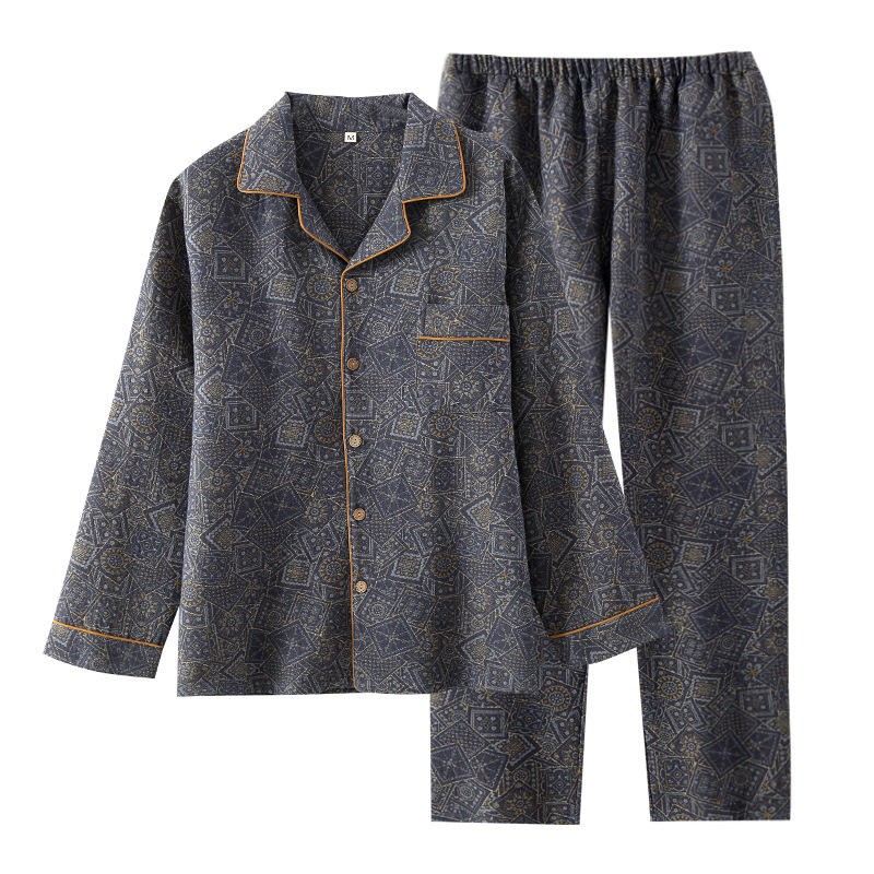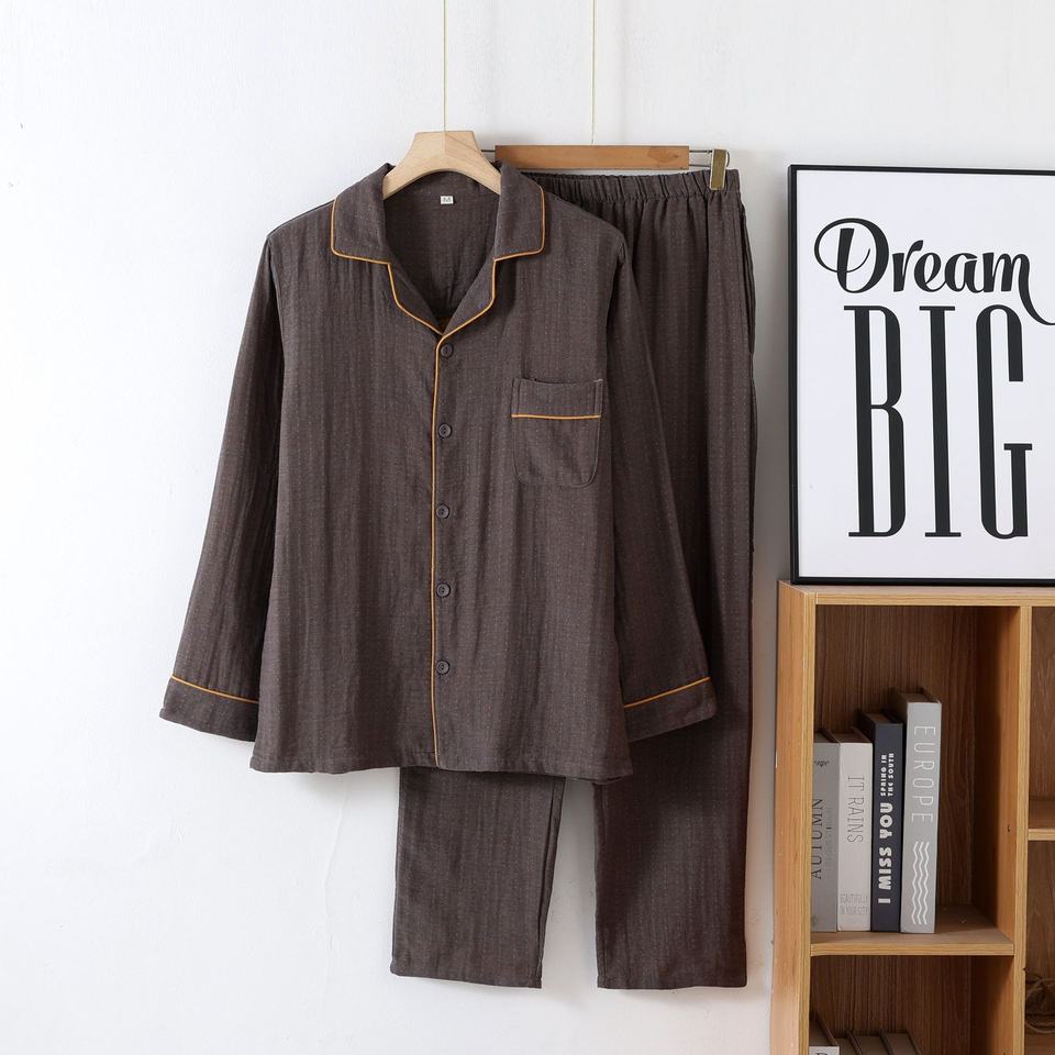 Pur coton teint en fil double couche gaze décontracté hommes pyjamas minces à manches longues lâche maison vêtements ensembles