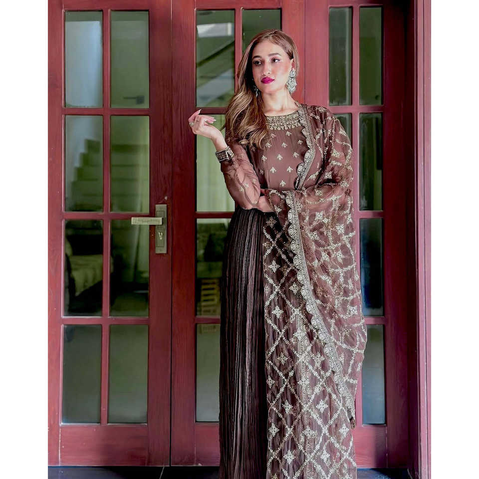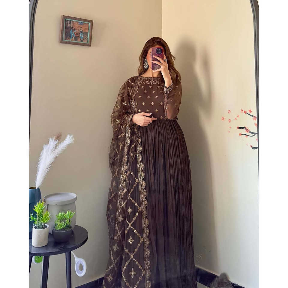 Pure Crush Chinon Silk Fancy Gown Set for Women Including Dupatta & Bottom for Party Wear Look