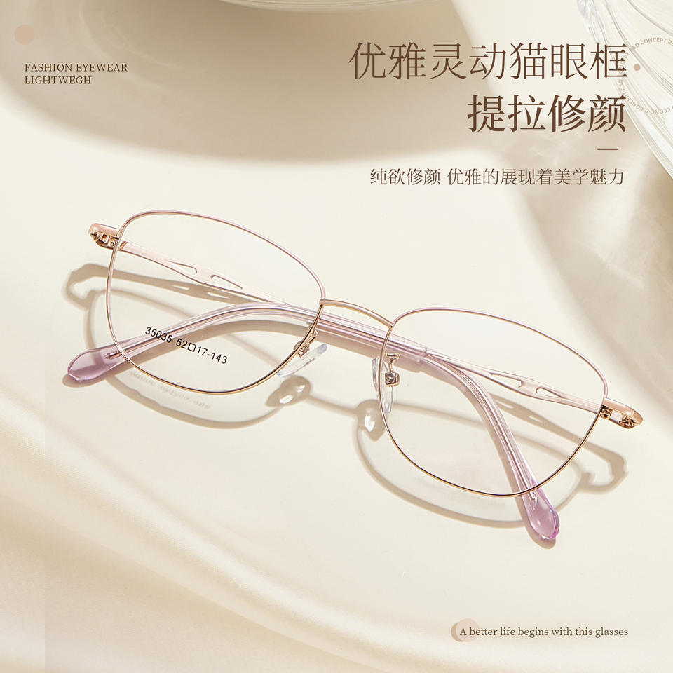 Monture de lunettes Pure Desire Gold Wire Cat Eye 35035 légère pour femme, monture complète ovale, petit design