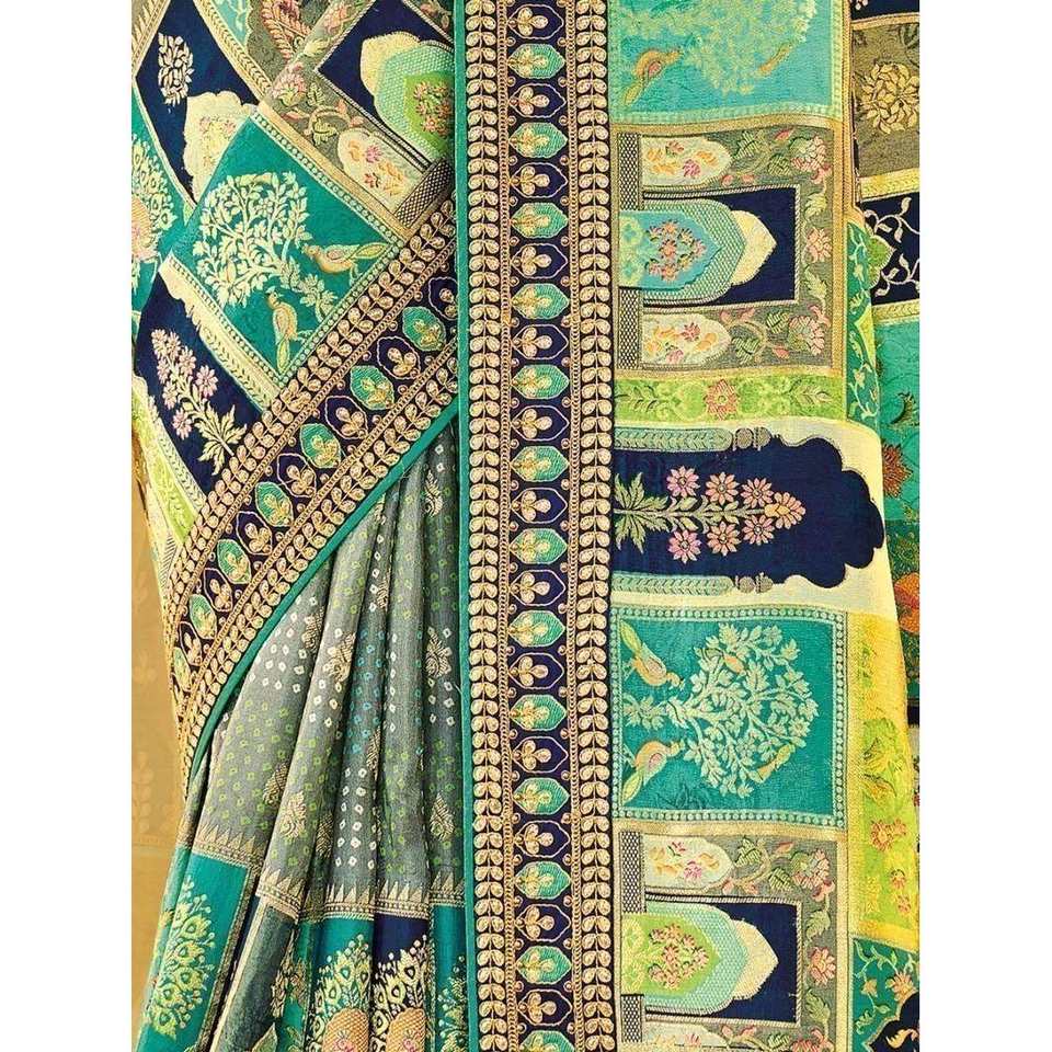 Sari traditionnel en soie Dola pure avec un travail de broderie gris unique pour les mariages Robe de mariée en soie Dola