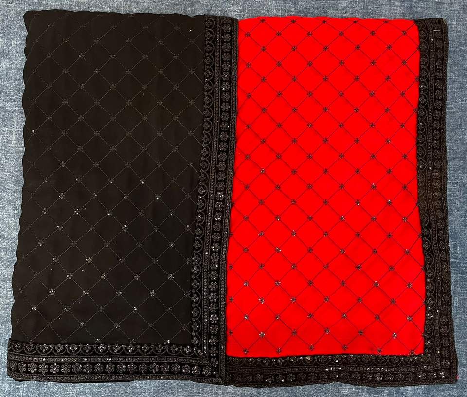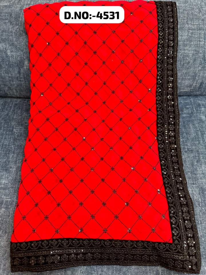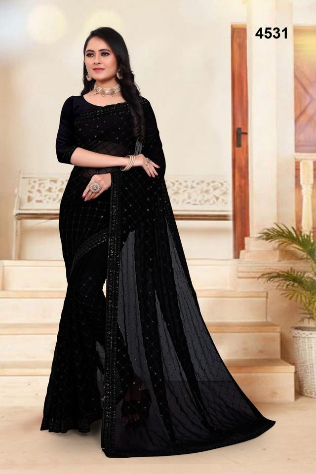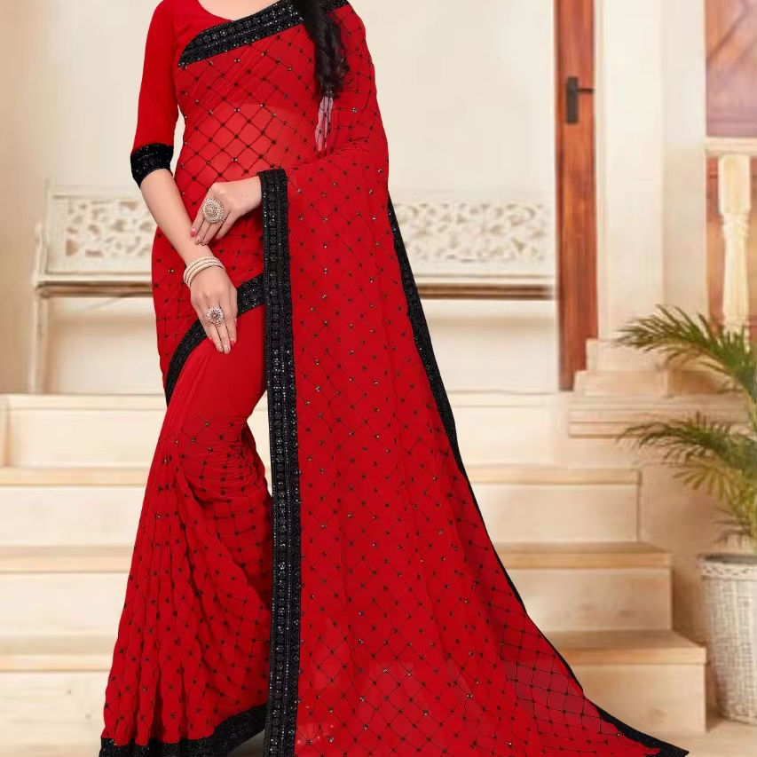 Saree en Georgette pure avec paillettes d'eau lourde et vêtements indiens et pakistanais à bordure lourde Blouse de course incluse