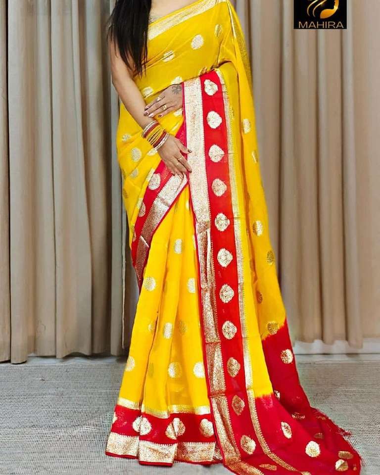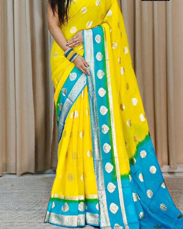 Haute qualité pur Georgette Jacquard Sari soie Concept Saree contraste couleur Blouse Pallu pour les adultes fête de mariage fonction porter