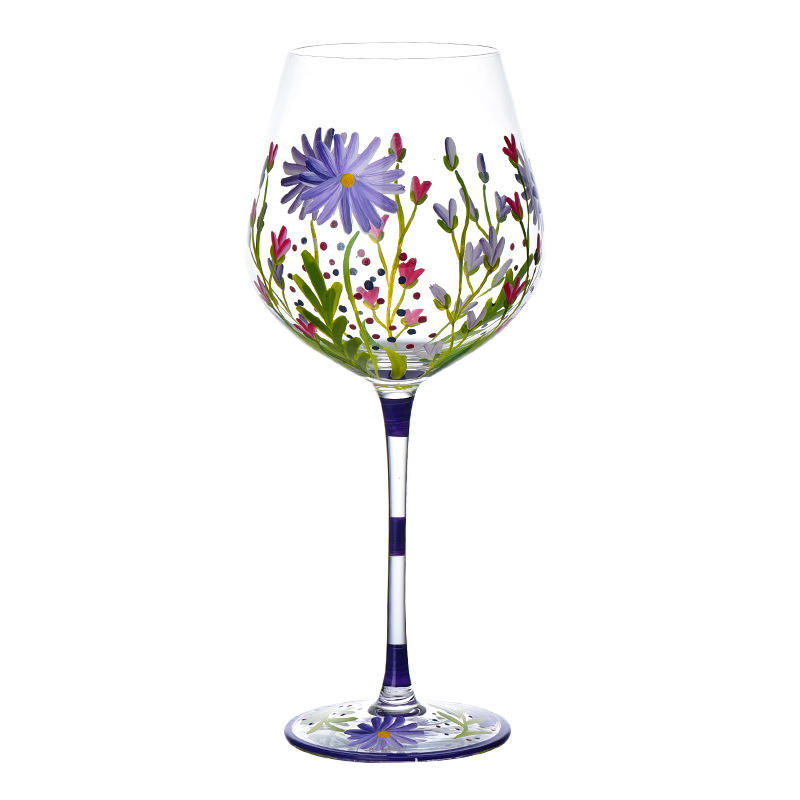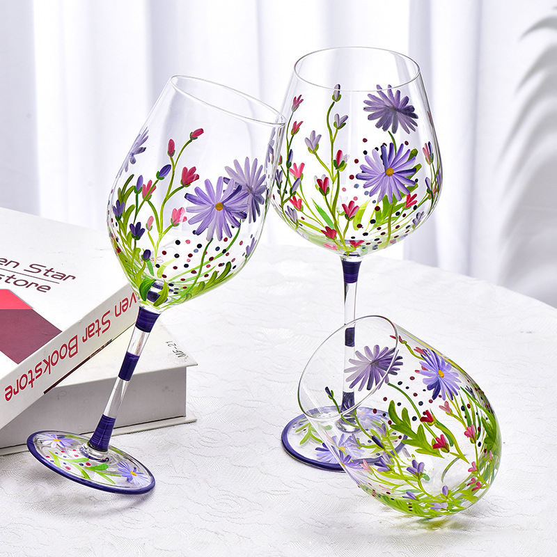 Verres à vin rouge peints à la main pour la maison et l'usage personnel, avec des motifs frais et artistiques