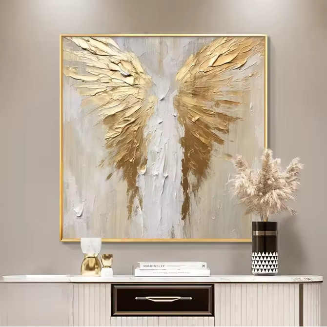 Peinture à l'huile peinte à la main pure plume dorée post-moderne décoratif suspendu lumière luxe salon canapé modèle Simple