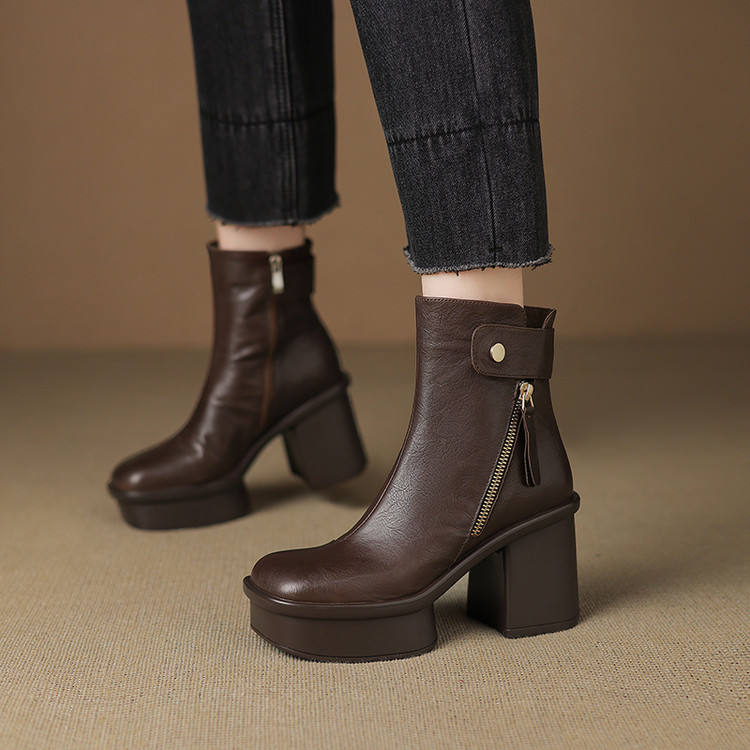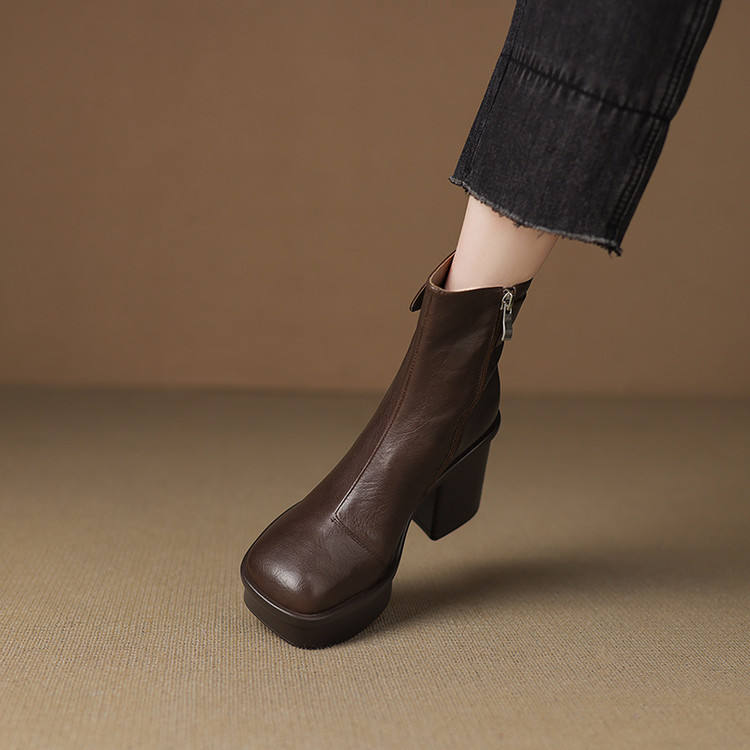 Chaussures en cuir véritable faites à la main, à bout carré, couleur unie, élégantes, rétro, décontractées, à talon moyen épais, antidérapantes et tendance