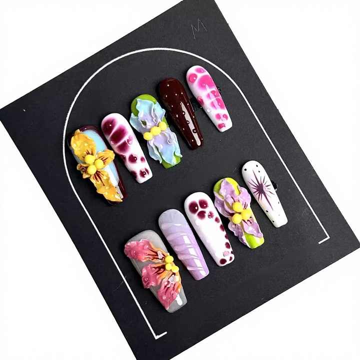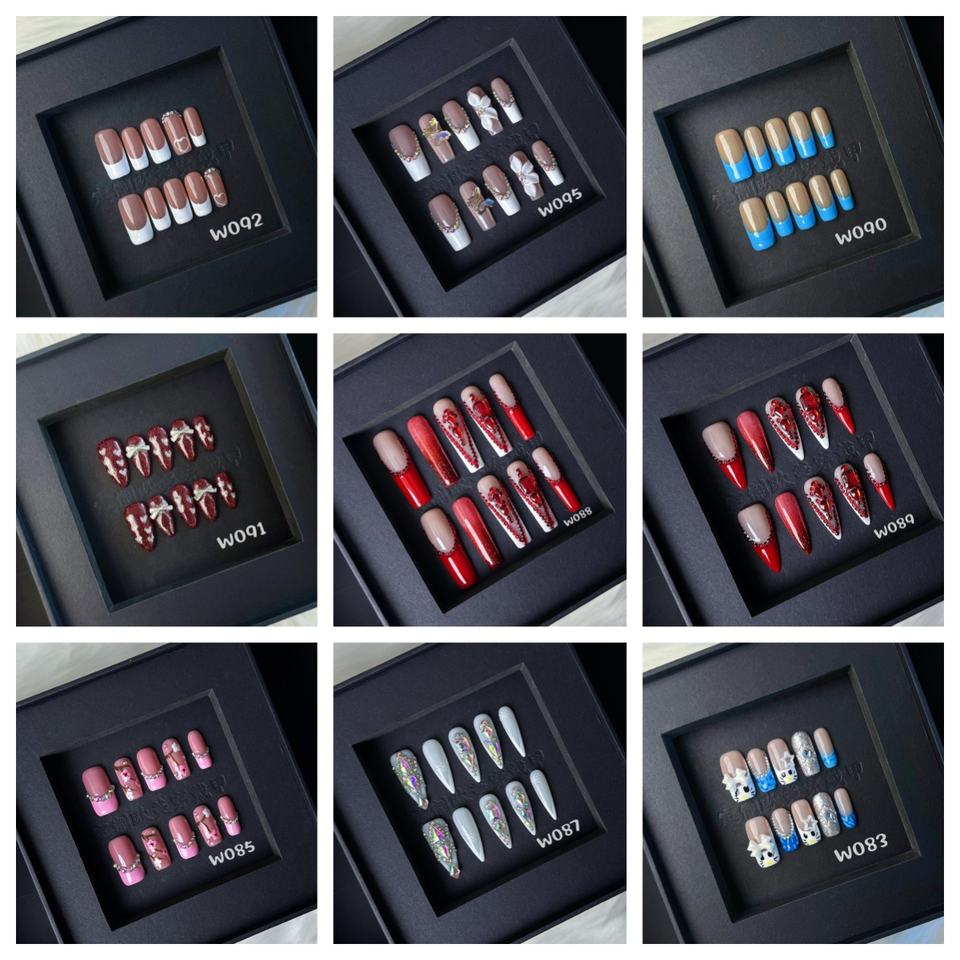 Ongles à coller 3D faits main en acrylique, forme cercueil, couverture complète