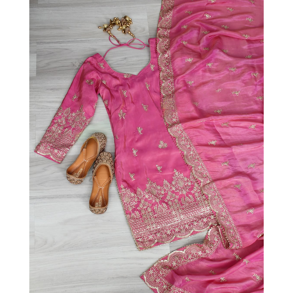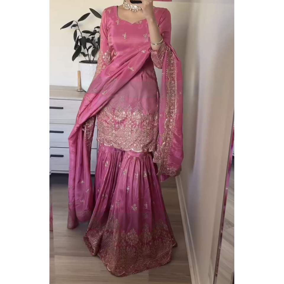 Pure Heavy Simar Georgette Party Wear Ensemble pour femmes comprenant un haut et Plazzo Dupatta