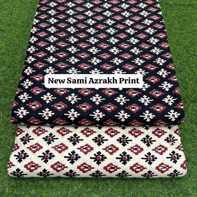 Tissu imprimé Sami Azrakh en pur coton indien, motif traditionnel fait main, doux et respirant, idéal pour les robes et l'artisanat.